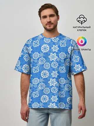 Мужская футболка оверсайз / Снежные Новогодние Узоры