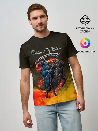 Мужская базовая футболка / Children of Bodom | Skeleton on a horse
