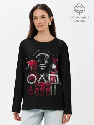 Лонгслив женский. Хлопок / ИГРА В КАЛЬМАРА РАСПОРЯДИТЕЛЬ