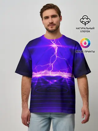 Мужская футболка оверсайз / НЕОНОВЫЕ МОЛНИИ