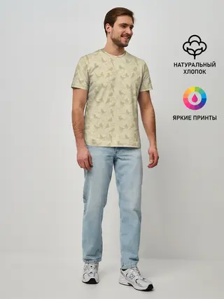 Мужская базовая футболка / Бежевый принт силуэты птичек