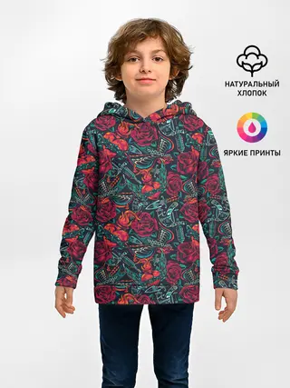 Мужской лонгслив базовый / Тату узор розы и машинки