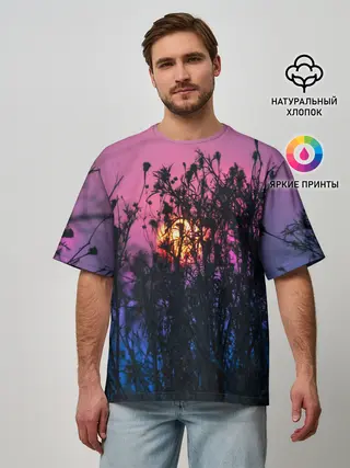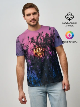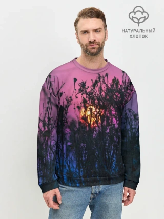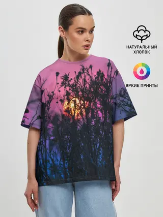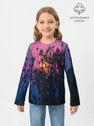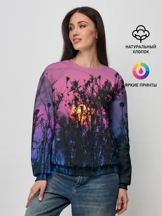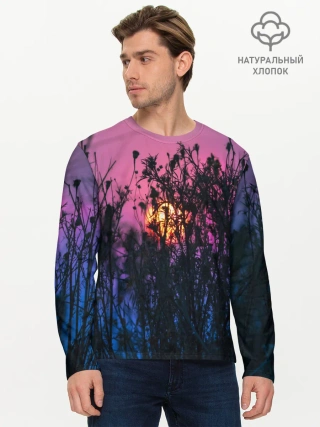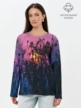 Лонгслив женский. Хлопок / Трава растения закатный свет