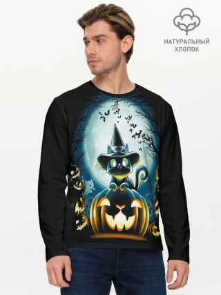 Мужской лонгслив базовый / Хэллоуин Кот