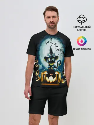 Мужская пижама с брюками / Хэллоуин Кот