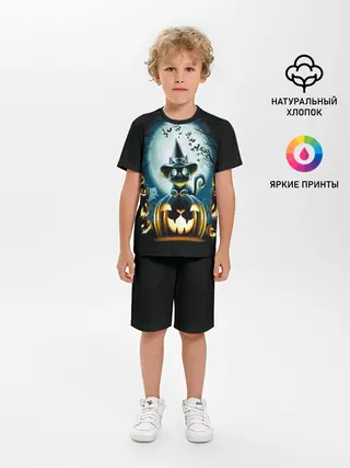 Детская пижама с шортами / Хэллоуин Кот