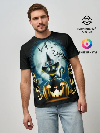 Мужская футболка оверсайз / Хэллоуин Кот