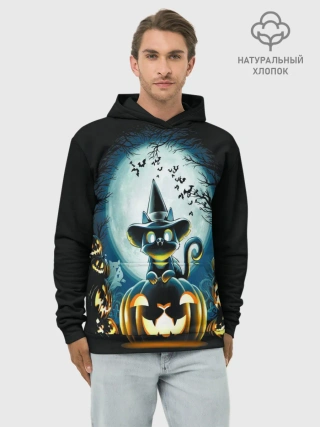 Худи мужской база хлопок / Хэллоуин Кот