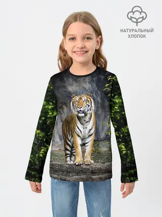 Детский лонгслив / ТИГР В ЛЕСУ