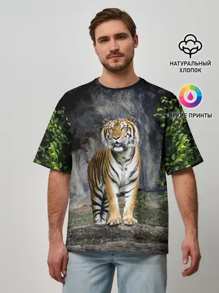 Мужская футболка оверсайз / ТИГР В ЛЕСУ