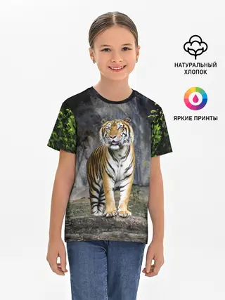 Детская базовая футболка / ТИГР В ЛЕСУ