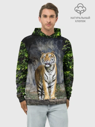 Худи мужской база хлопок / ТИГР В ЛЕСУ