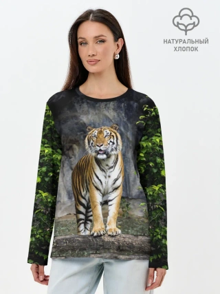 Лонгслив женский. Хлопок / ТИГР В ЛЕСУ