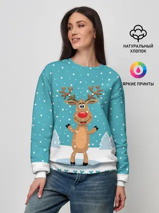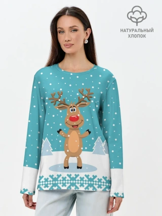 Лонгслив женский. Хлопок / Иди, обниму! - Рудольф