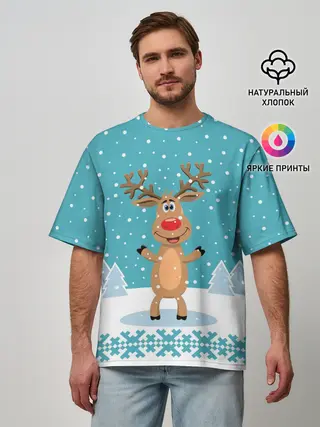 Мужская футболка оверсайз / Иди, обниму! - Рудольф