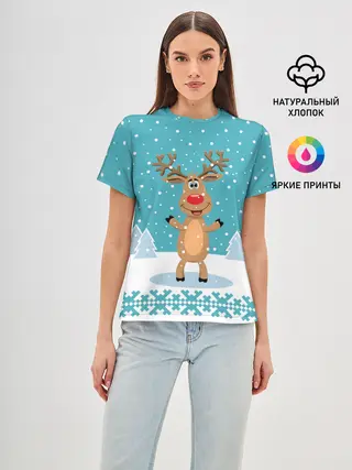 Женская базовая футболка / Иди, обниму! - Рудольф