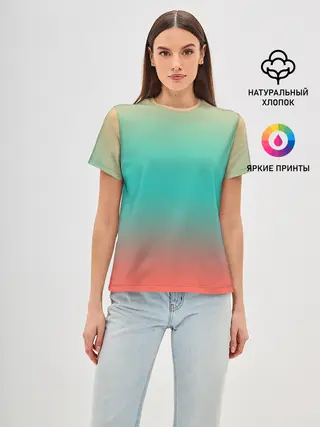 Женская базовая футболка / Красно-бирюзовый градиент