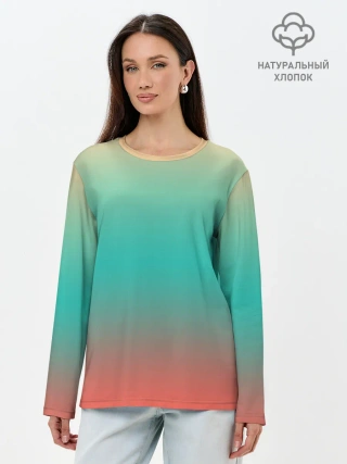 Лонгслив женский. Хлопок / Красно-бирюзовый градиент