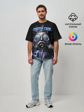 Мужская футболка оверсайз / Сектор Газа противогаз и дым