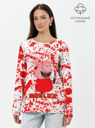 Лонгслив женский. Хлопок / Roblox piggy/Свинка Пигги.