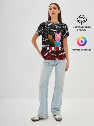 Женская футболка оверсайз / Roblox piggy/Свинка Пигги.