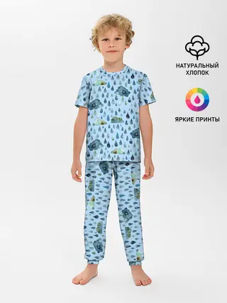 Детская пижама с брюками / Дождливая осень.Тучки и дождь