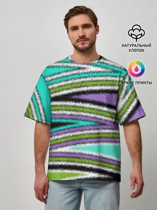 Мужская футболка оверсайз / Абстрактный асимметричный
