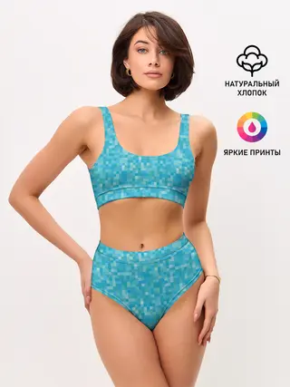Женские топ и трусы / Бирюзовая пиксель абстракция