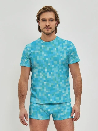 Мужские трусы с футболкой / Бирюзовая пиксель абстракция