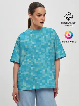 Женская футболка оверсайз / Бирюзовая пиксель абстракция
