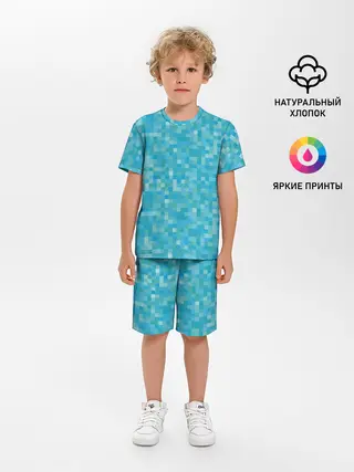 Детская пижама с шортами / Бирюзовая пиксель абстракция