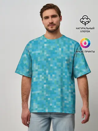 Мужская футболка оверсайз / Бирюзовая пиксель абстракция