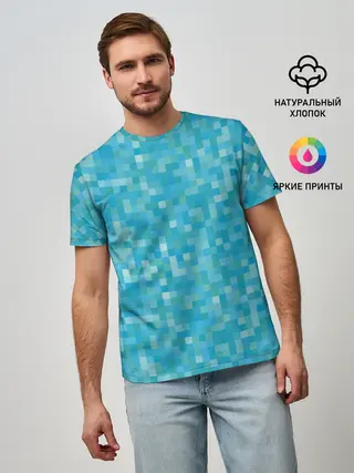 Мужская базовая футболка / Бирюзовая пиксель абстракция