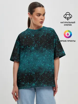 Женская футболка оверсайз / Черно-синие блестки