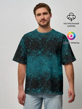 Мужская футболка оверсайз / Черно-синие блестки