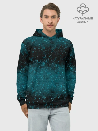 Худи мужской база хлопок / Черно-синие блестки