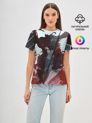 Женская базовая футболка / Аста в режиме демона черный клевер