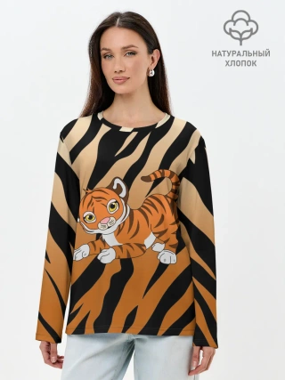 Лонгслив женский. Хлопок / Тигр 2022 | НОВЫЙ ГОД