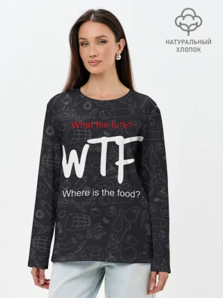 Лонгслив женский. Хлопок / Что за хрень, где еда?