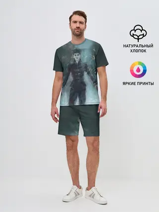 Мужская пижама с брюками / Абстрактный дизайн ,,Зелень