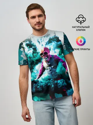 Мужская пижама с брюками / Реалистичные черепа с розами