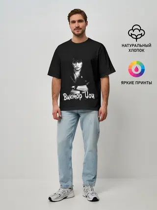 Мужская футболка оверсайз / ВИКТОР ЦОЙ Ч/Б