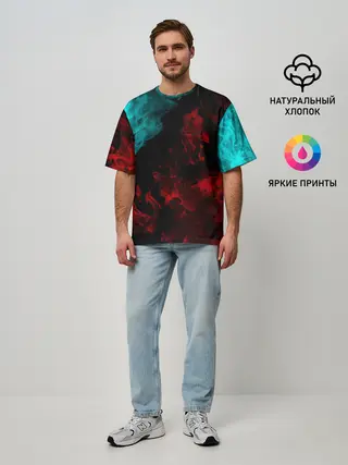 Мужская футболка оверсайз / НЕОНОВЫЙ ОГОНЬ
