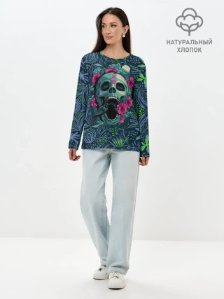 Лонгслив женский. Хлопок / Череп В Цветах