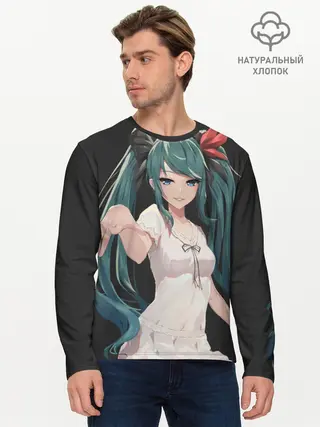 Мужской лонгслив базовый / Хацуне Мику с протянутой рукой