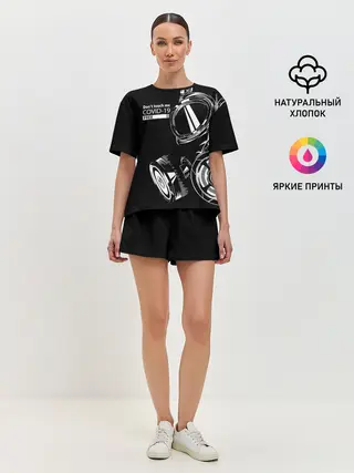 Женская футболка оверсайз / Не трогай меня COVID-19