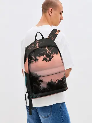 Рюкзак джинсовый / Пальмы вид снизу закат