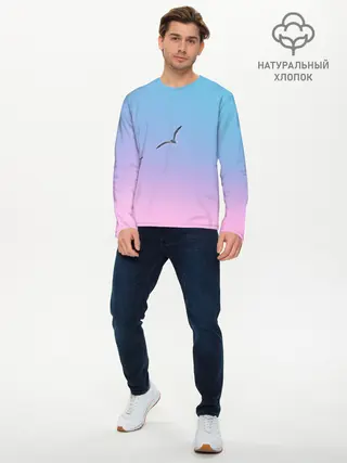 Мужской лонгслив базовый / чайки птицы полет градиент