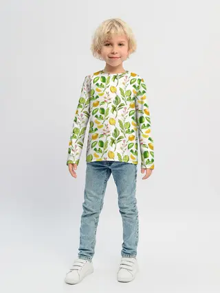 Мужской лонгслив базовый / Летний узор лимон ветки листья