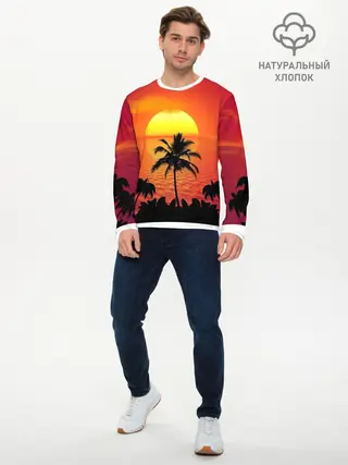 Мужской лонгслив базовый / Пальмы на фоне моря